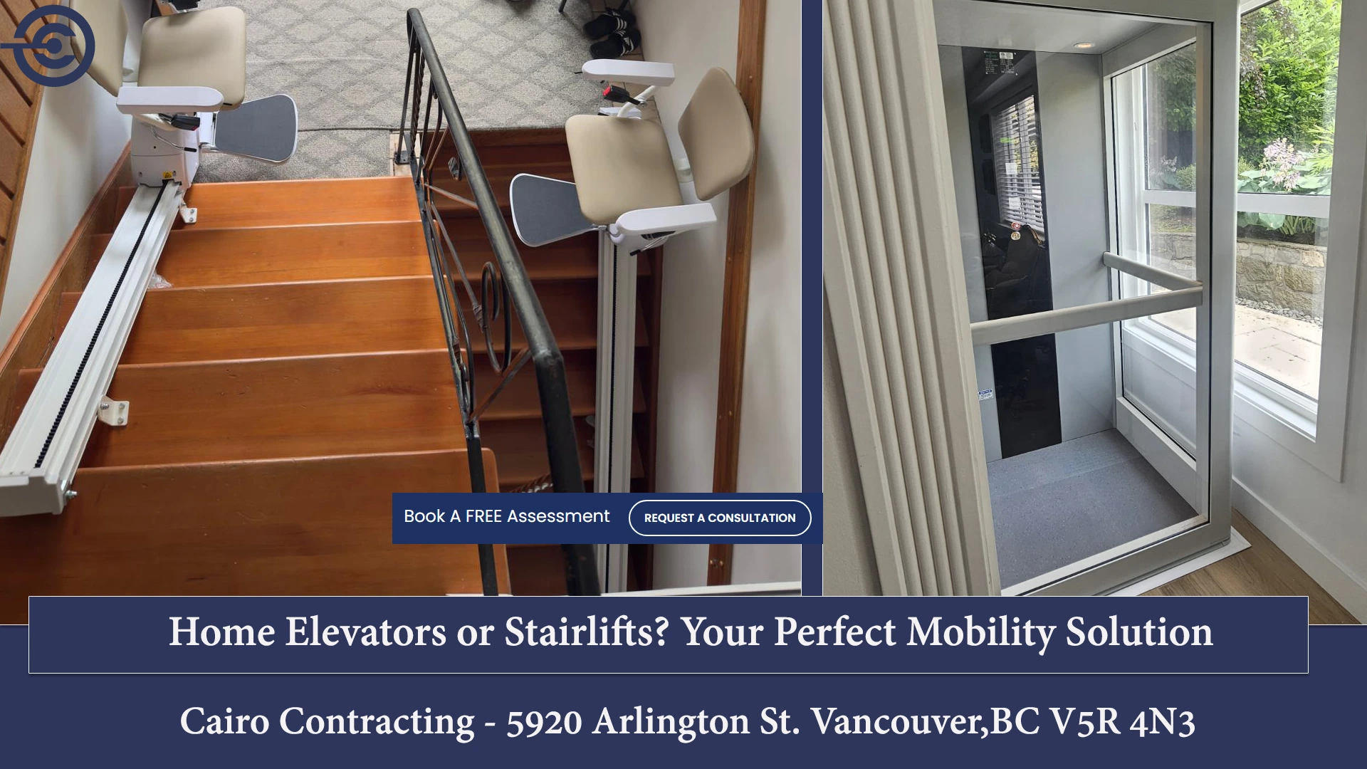 Cairo Contracting has established its reputation for providing a wide range of accessibility solutions, whether standard or customized, to ensure economic and safe accessibility for all its clients across Vancouver, the Lower Mainland, and the Fraser Valley. Let’s explore the differences between a home elevator and a stairlift to help you make an informed decision.