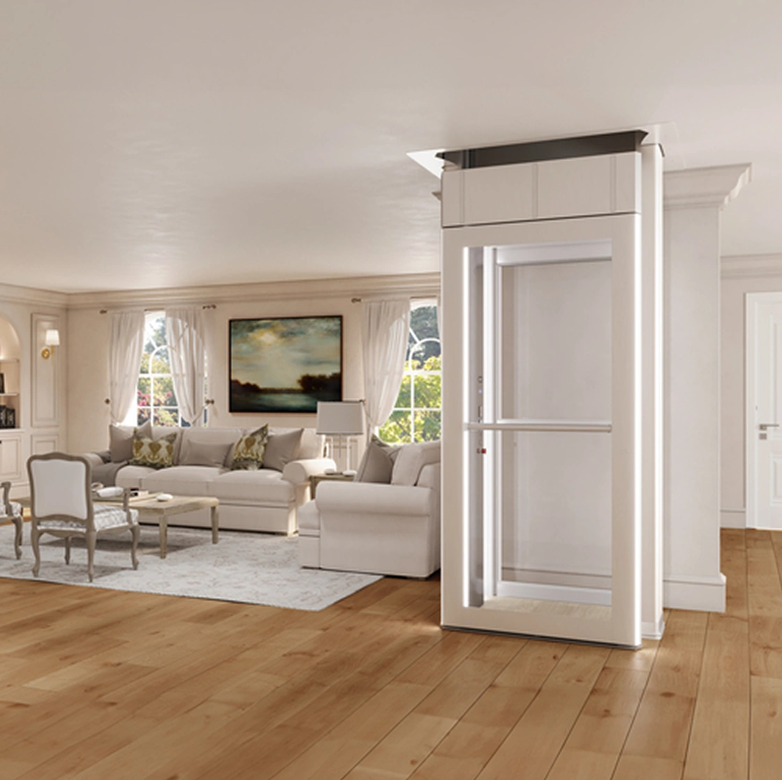 The Savaria Luma Lift is an elegant, space-saving through-floor residential lift that provides seamless vertical travel between two levels without the need for a traditional shaftway, hoistway, or pit cut-out.